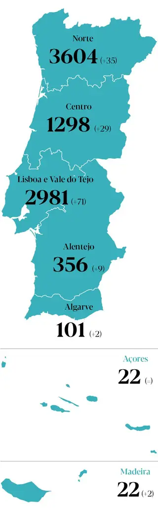 No dia 4 de novembro, dos 7.497 infetados registados, 3.570 dizem respeito a atualização da DGS após atraso de laboratório na região Norte